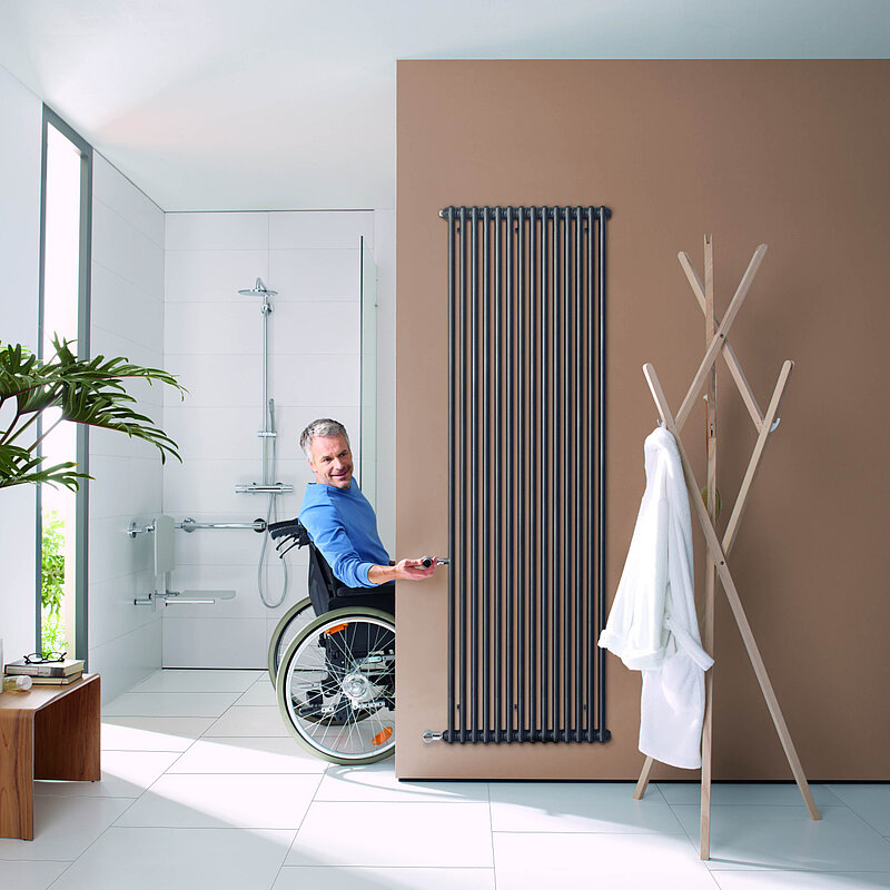 Die Ausstattung im Badezimmer soll beim Neubau wie auch bei einer Sanierung den wachsenden Ansprüchen gerecht werden und in künftigen Lebensphasen genügend Komfort bieten: barrierefreie, bodengleiche Duschen mit passenden Haltegriffen, Dusch-WCs, komfortable Waschtische wie auch Badheizkörper mit optimaler Bedienhöhe.