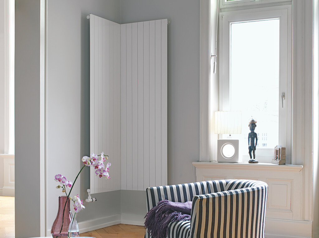 Die gebogenen Heizkörper von Zehnder werden als Gestaltungselemente eingesetzt.