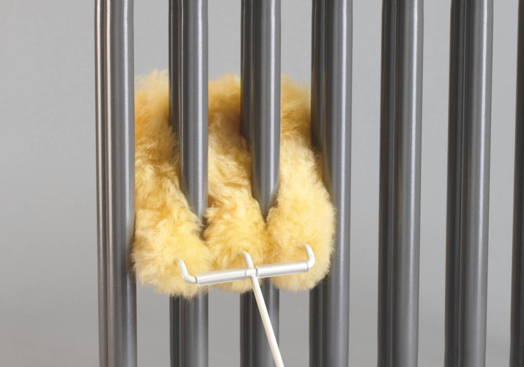 3-fingrige Bürste mit Besatz aus echtem Lammfell für optimale Reinigung der Rohre, Rohrzwischenräume und aller schlecht zugänglichen Stellen