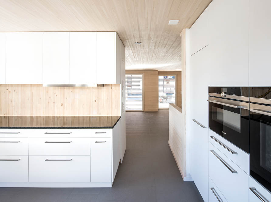 Um das Gebäude sowohl energieeffizient zu betreiben als auch jederzeit in der luftdicht gedämmten Gebäudehülle gesunde und angenehme Raumluftverhältnisse zu gewährleisten, entschieden sich Bauherrenschaft und Architekten für die Installation der Grundwohnungslüftung Zehnder ComfoFlow. Sie schliesst die preisliche und technische Lücke zwischen einer Komfortlüftungsanlage und einer reinen Abluftanalage. Letztere ist zwar kostenfreundlich aber hat unangenehme Nebenerscheinungen wie plötzlicher Kaltlufteinfall, Zugluft und Schallbelästigung durch Aussenlärm sowie der Motor der Abluftventilatoren.