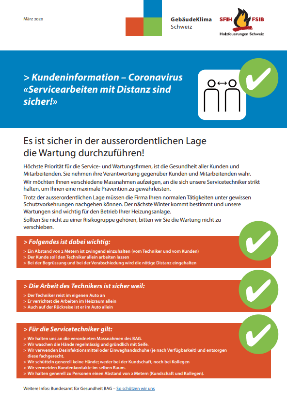 Service-Arbeiten werden ab sofort nur in absoluten Notfällen wahrgenommen, das Service-Wartungsgeschäft Komfortlüftung wird bis Ende April ausgesetzt.
