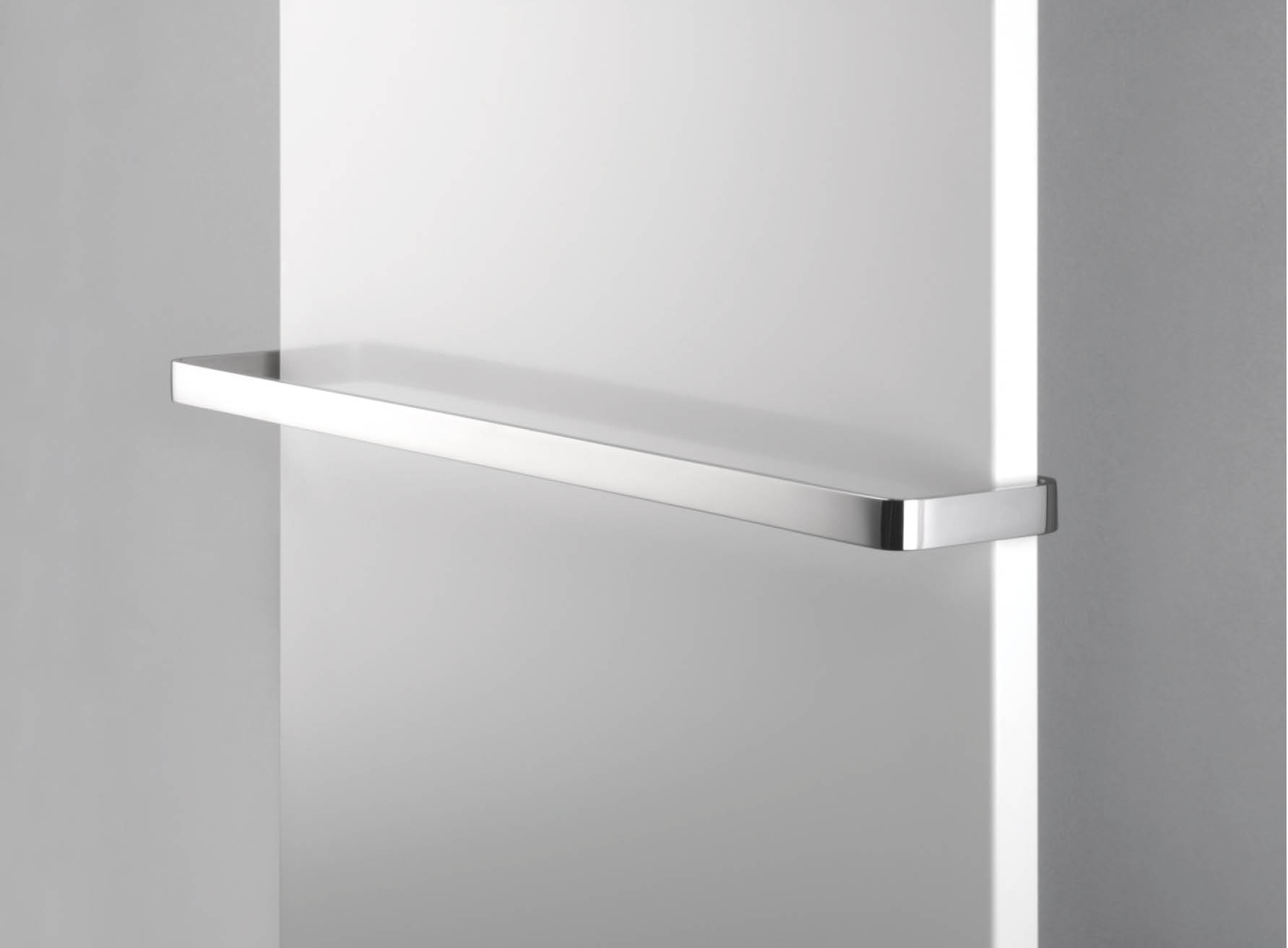 Pour Zehnder Fina Lean Bar. Version de haute qualité en acier, chromée ou d’une autre couleur, avec fixation à deux points dissimulée derrière le corps de chauffe; capacité de charge max. 10 kg.