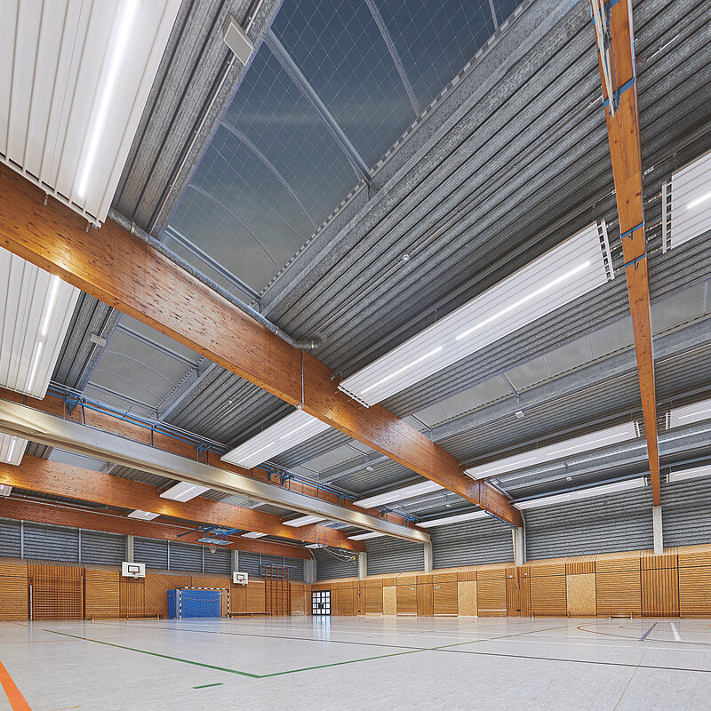 Le calcul de l’éclairage doit non seulement tenir compte d’un éclairage uniforme, mais aussi de l’utilisation du bâtiment. Qu’il s’agisse d’organiser des manifestations en soirée ou des événements sportifs – nous pouvons répondre à toutes les exigences grâce aux Zehnder LED 2.0 à intensité variable.