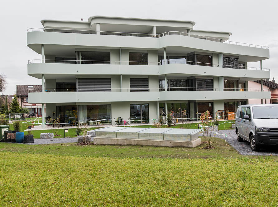 L’alimentation en air de chaque habitation s’effectue via des caissons de ventilation de l’air ambiant insonorisés de type Zehnder ComfoVar. Ceux-ci régulent l’apport d’air neuf et ne nécessitent qu’un espace restreint dans les différents logements. Les habitants peuvent sélectionner confortablement l’intensité de ventilation à l’aide d’un interrupteur à trois positions