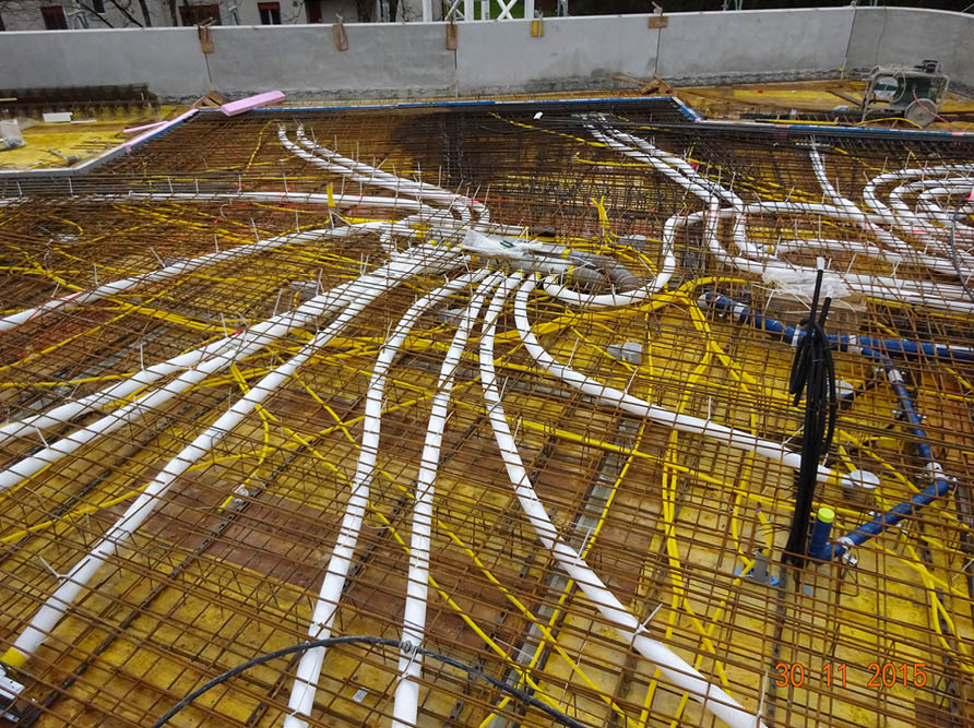 L’appareil de ventilation grand volume placé à la cave peut, grâce à sa construction modulaire, être adapté aux besoins réels du projet. Il est doté de nombreuses fonctions intelligentes et innovantes. L’air neuf est prétempéré par la pompe à chaleur avec sondes géothermiques, qui commande le fonctionnement d’une batterie de post-chauffage. La récupération de chaleur de l’air vicié s’élève à environ 90 %. Pour les journées d’été particulièrement chaudes, l’appareil dispose d’un by-pass en standard.