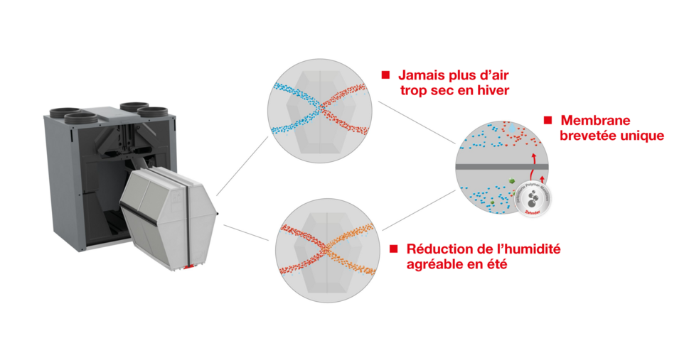 Les ventilations de confort avec échangeur enthalpique de Zehnder récupèrent jusqu’à 80 % de la chaleur et jusqu’à 70 % de l’humidité.