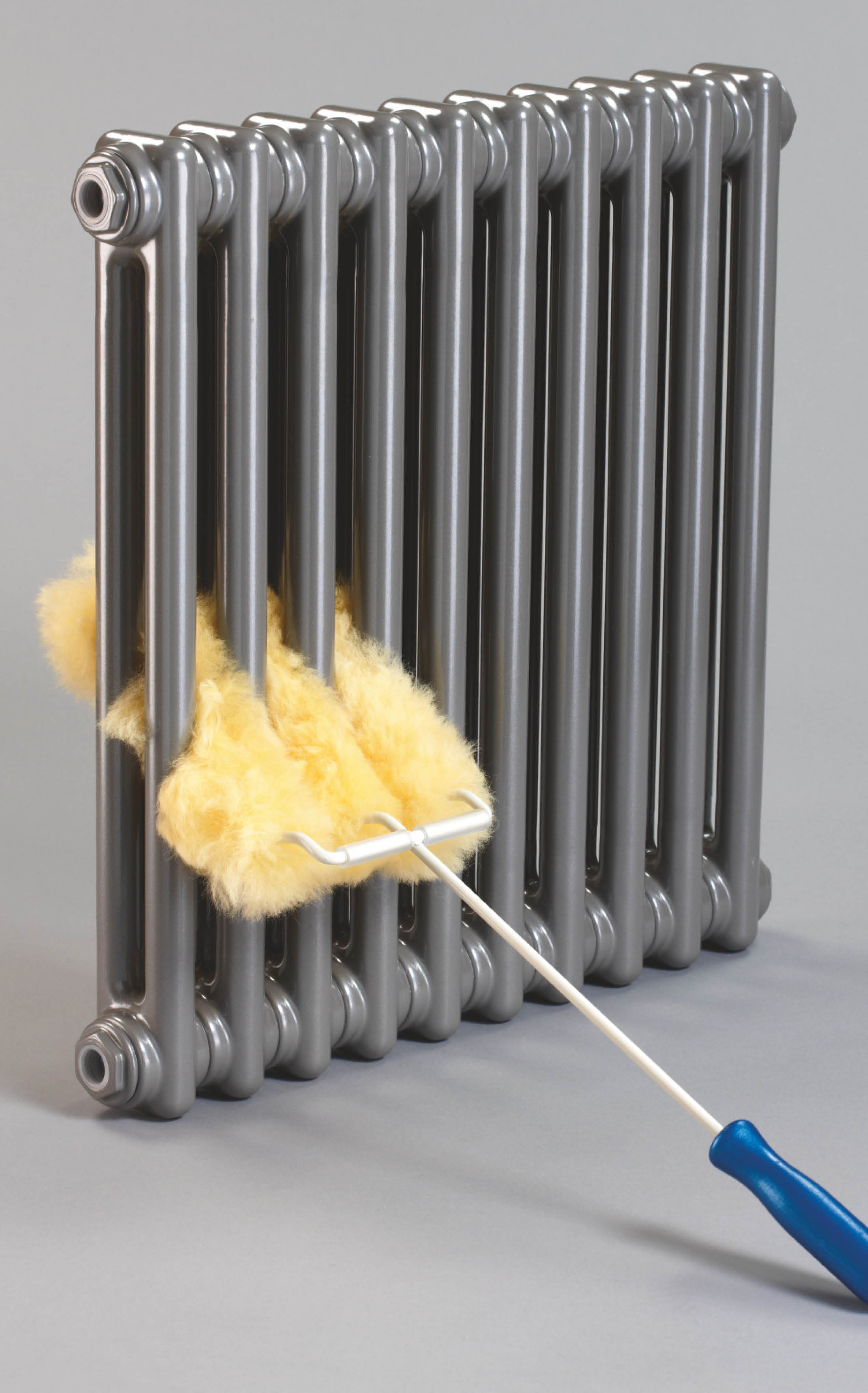 Spazzola a 3 dita con rivestimento in vero pelo di agnello per la pulizia ottimale dei tubi, degli spazi fra i tubi e di tutti i punti difficili da raggiungere