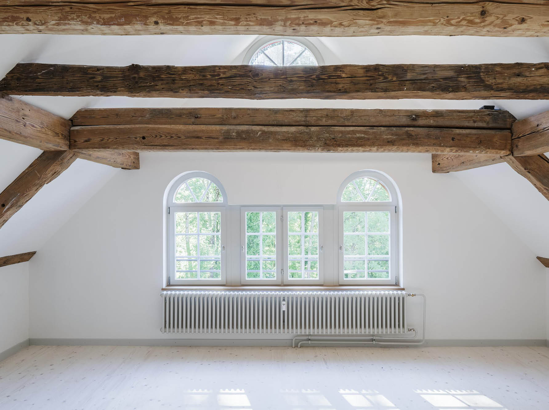 I responsabili della ristrutturazione hanno scelto i classici corpi riscaldanti a tubi di Zehnder che creano un connubio estetico perfetto tra vecchio e nuovo.