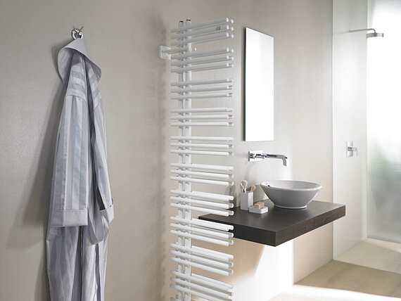 Con Zehnder Yucca l’allestimento del bagno ha possibilità pressoché illimitate, dalla forma classica alla versione asimmetrica come Zehnder Yucca Asym, con il tubo collettore disposto a sinistra o a destra, la mascherina decorativa, o come pratico divisorio per ambienti: Zehnder Yucca riesce sempre catturare lo sguardo. La disposizione dei tubi rotondi aperta sul lato lo rende perfetto per appendere salviette, accappatoi e indumenti.