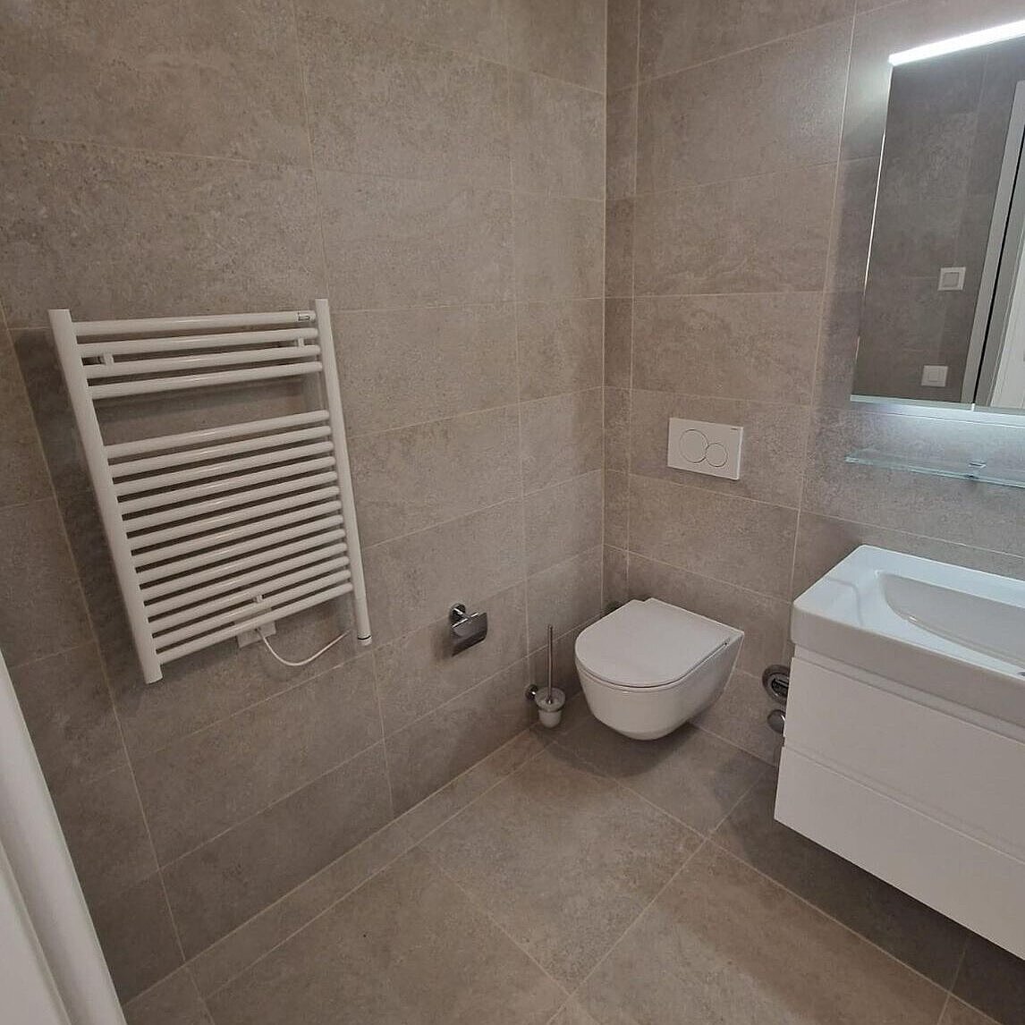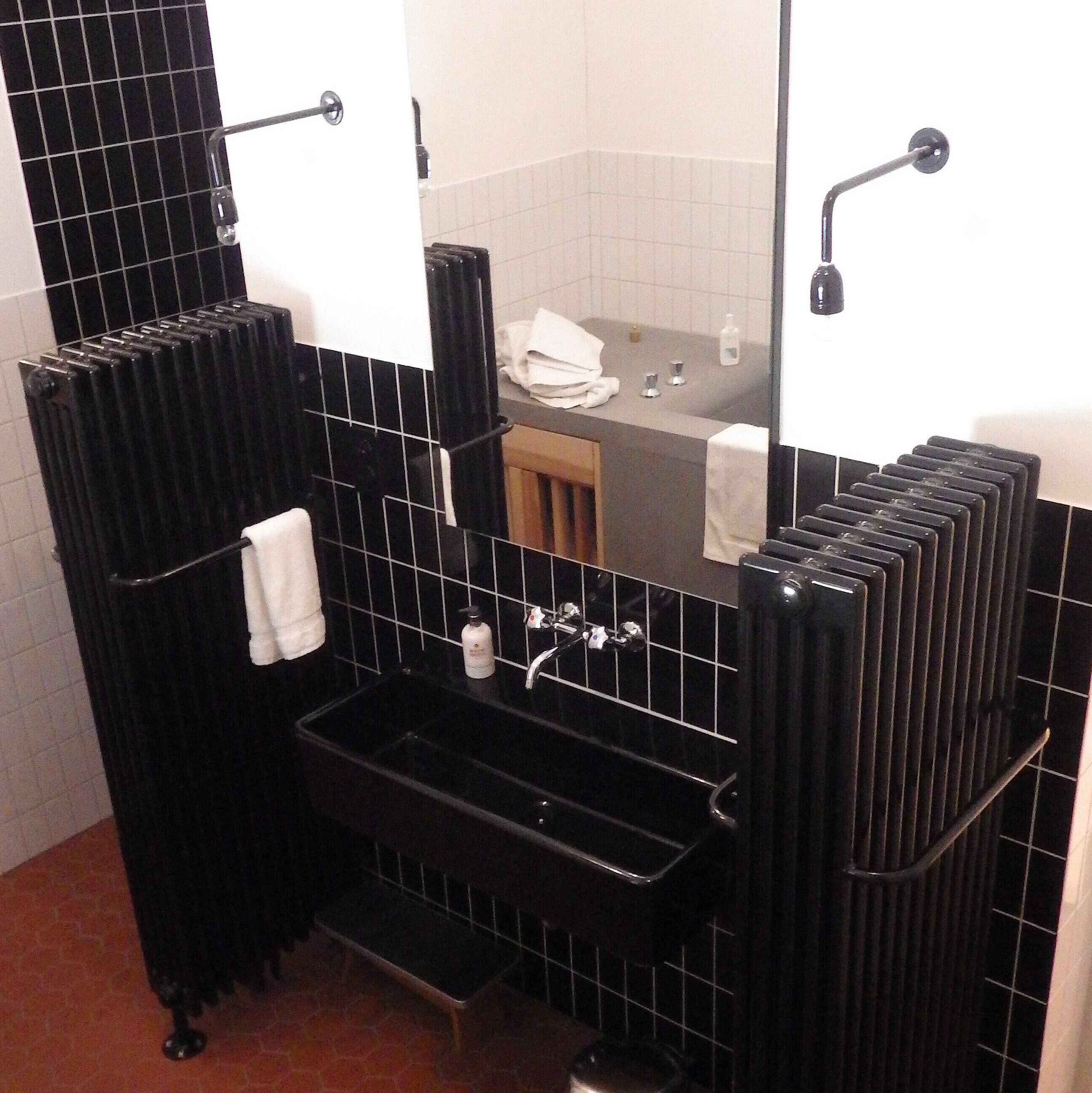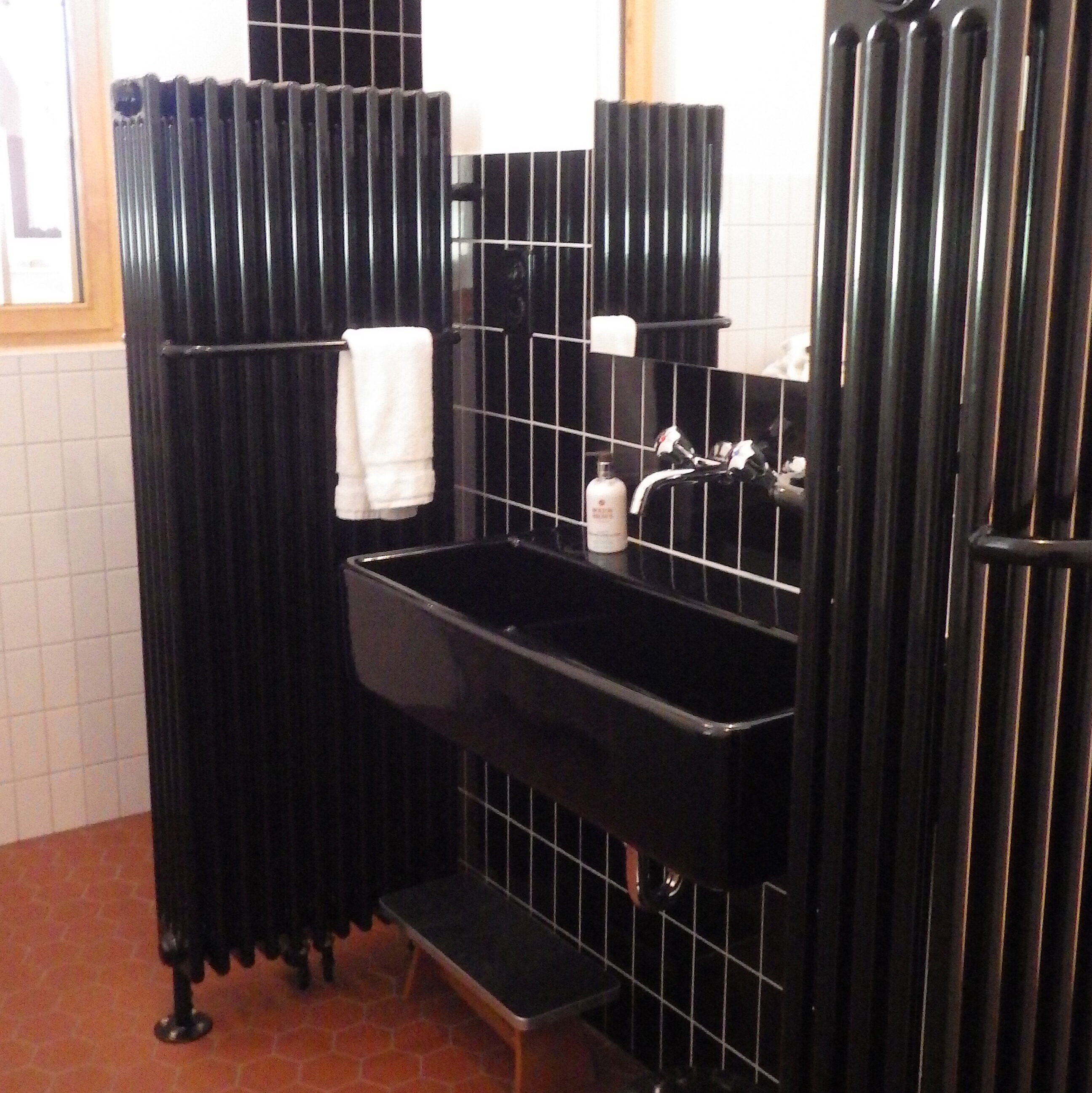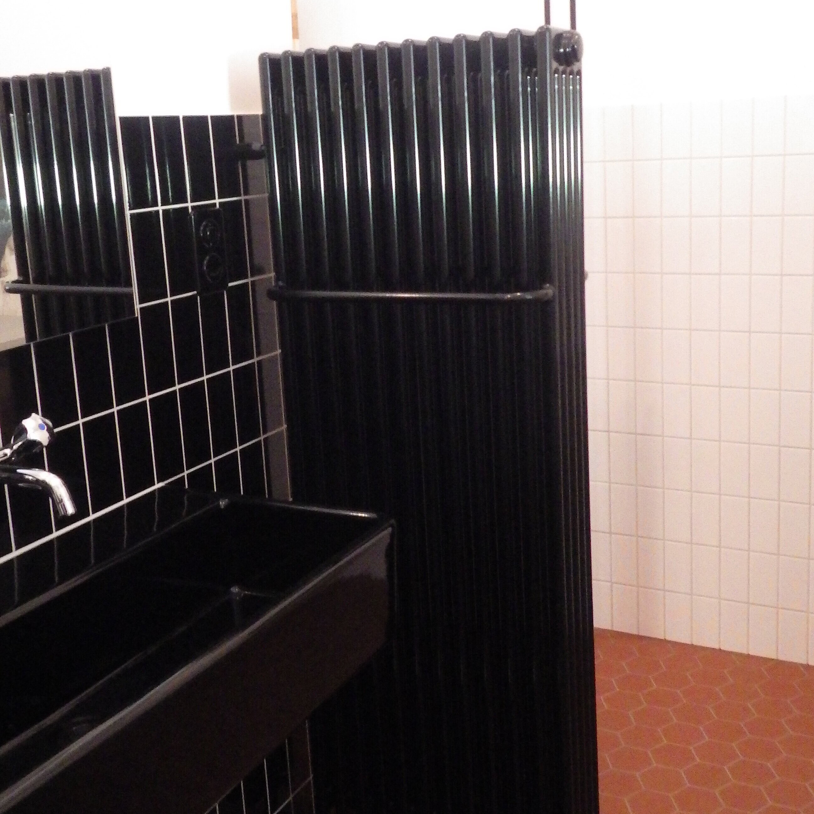 Chi non ama il fascino dei tempi passati? I corpi riscaldanti neri Zehnder Charleston, posizionati a destra e a sinistra del lavabo, sono veri e propri classici del design. Uniscono stile e funzionalità in modo elegante. Questi corpi riscaldanti non sono solo attraenti, ma anche incredibilmente pratici.