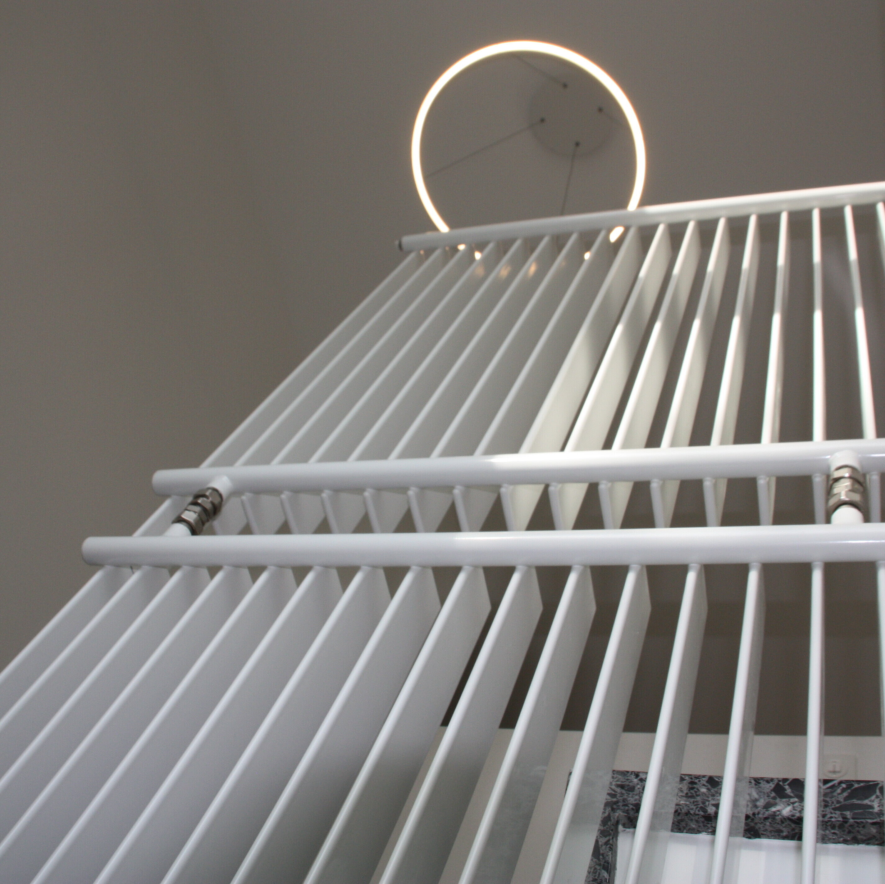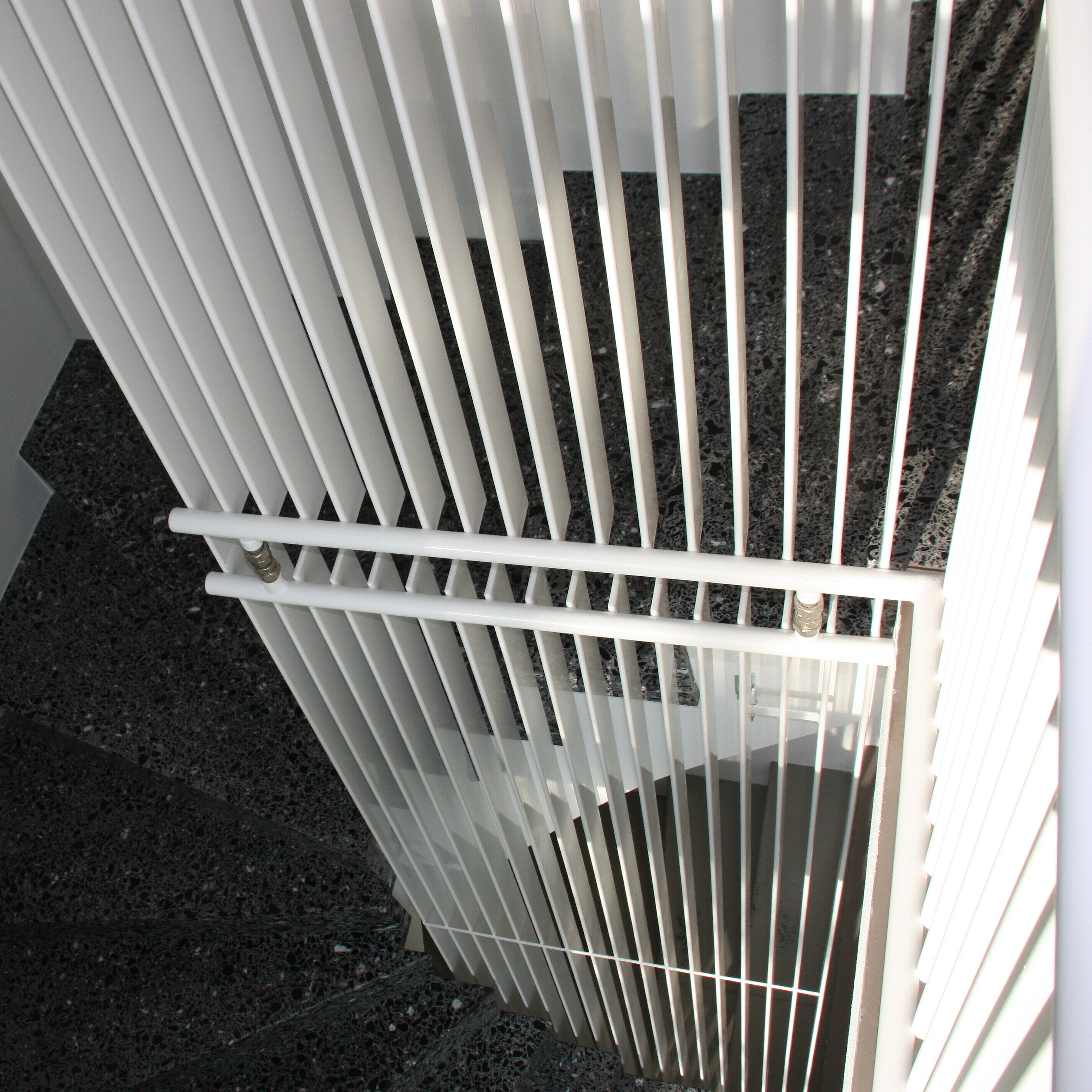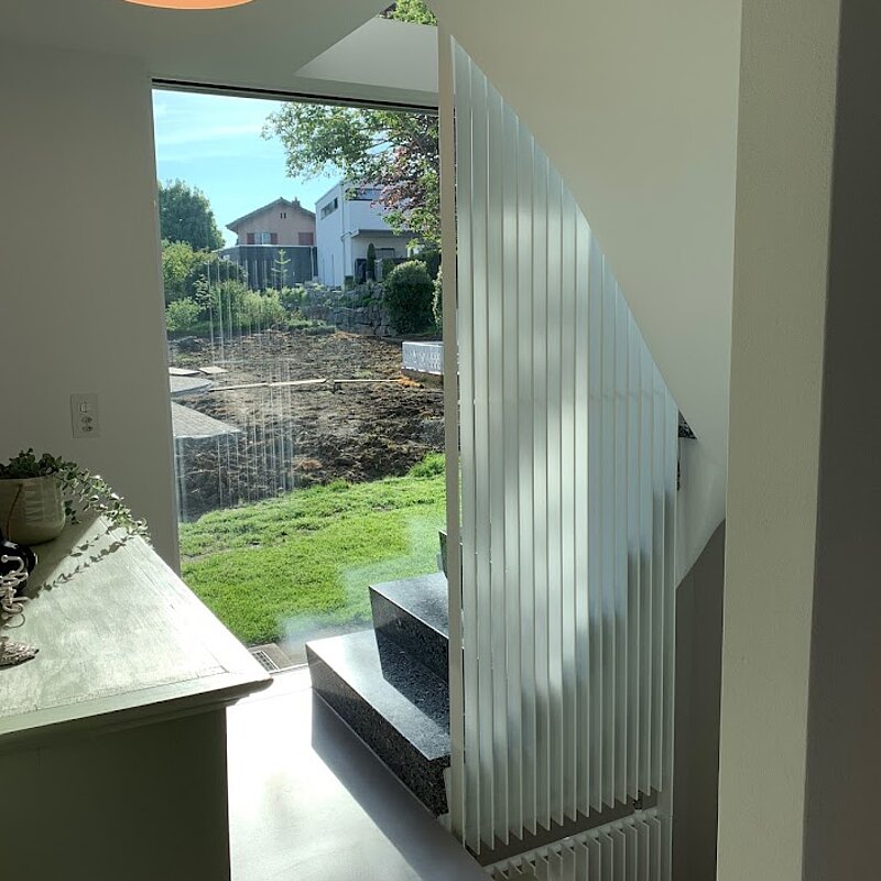Nella ristrutturazione della casa unifamiliare di Langenthal, la ringhiera delle scale è stata sostituita con un moderno Zehnder Excelsior. L'imponente corpo riscaldante si erge per 3 piani e non solo è bellissimo, ma garantisce anche una distribuzione ottimale del calore nel vano scale.
