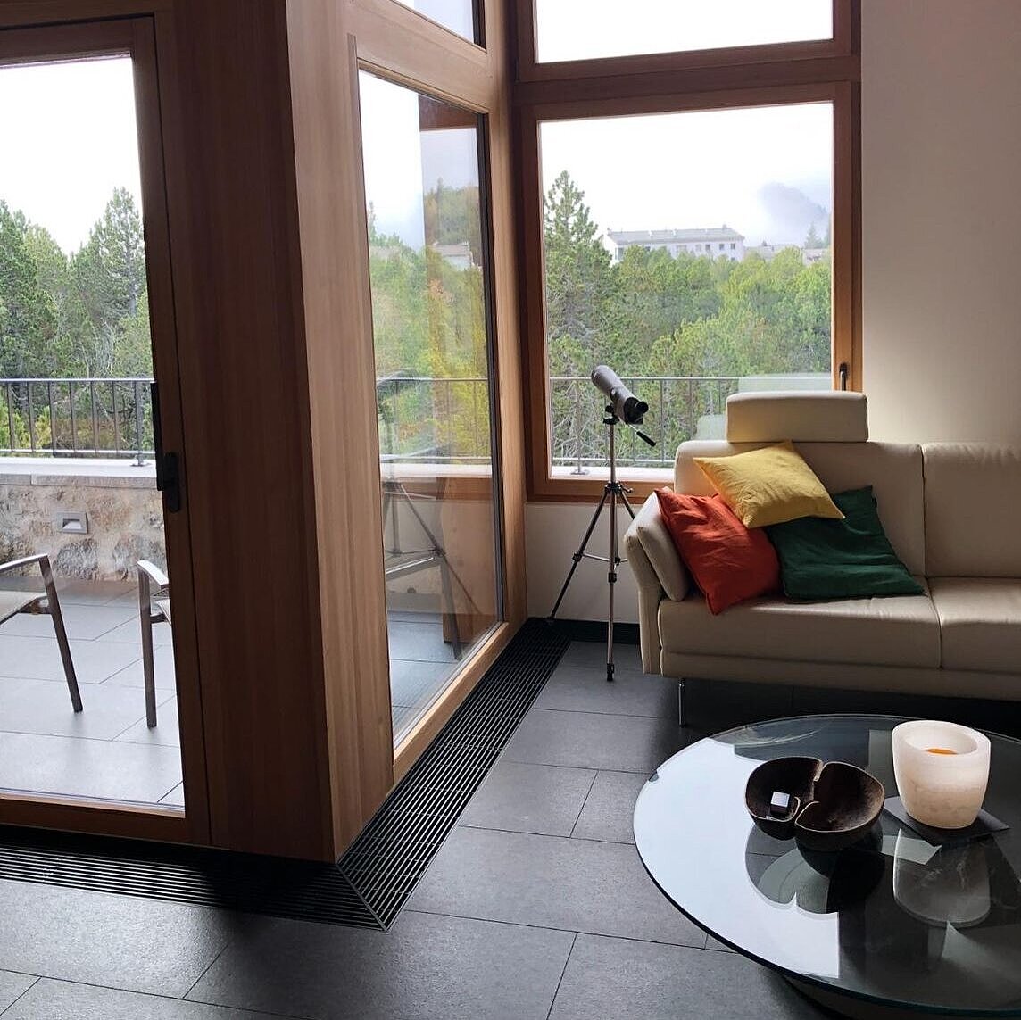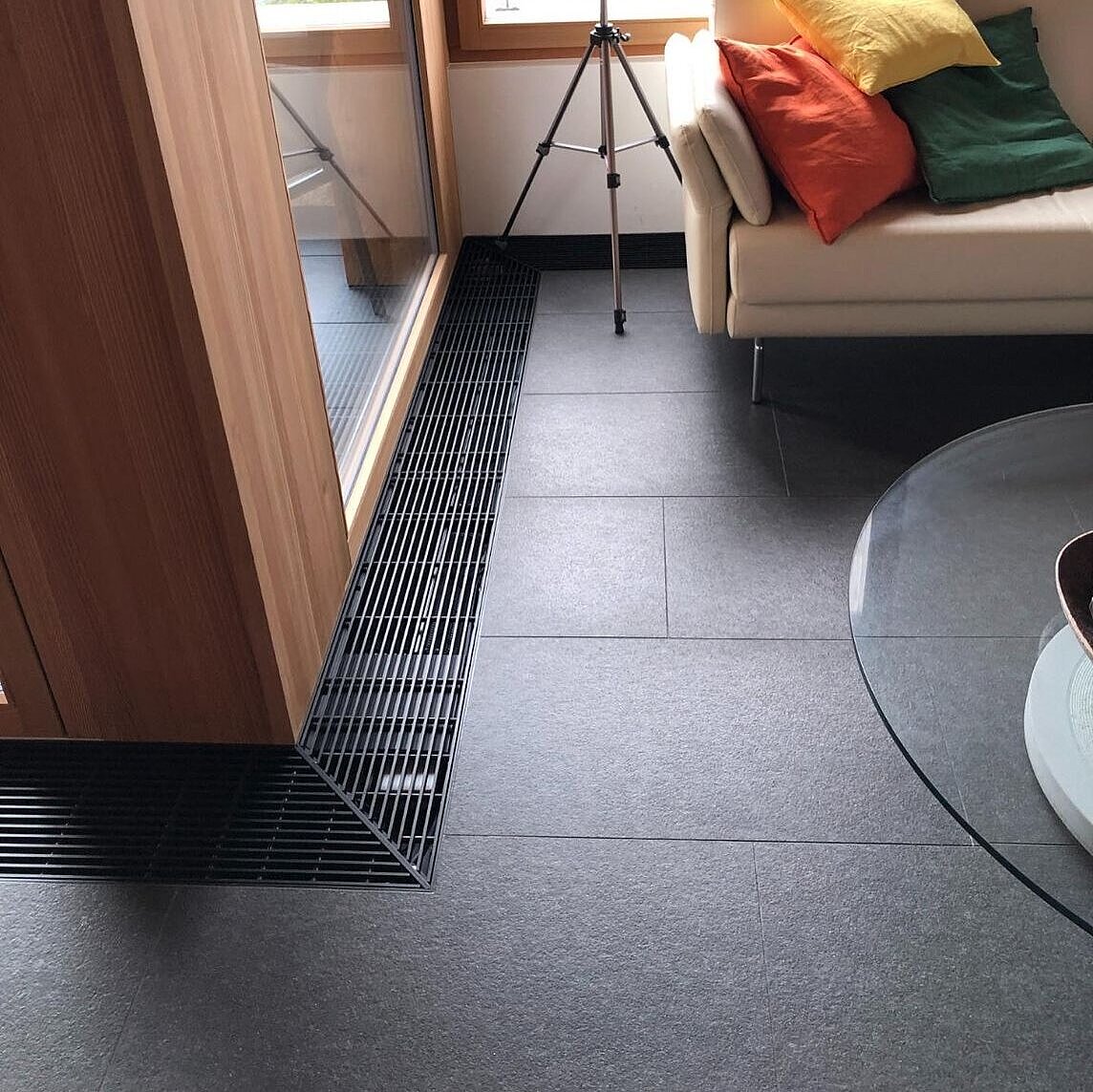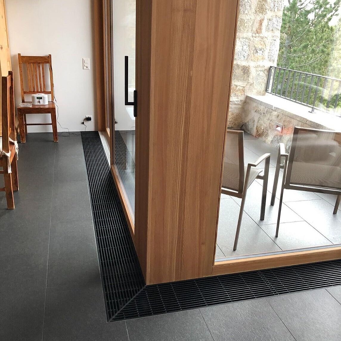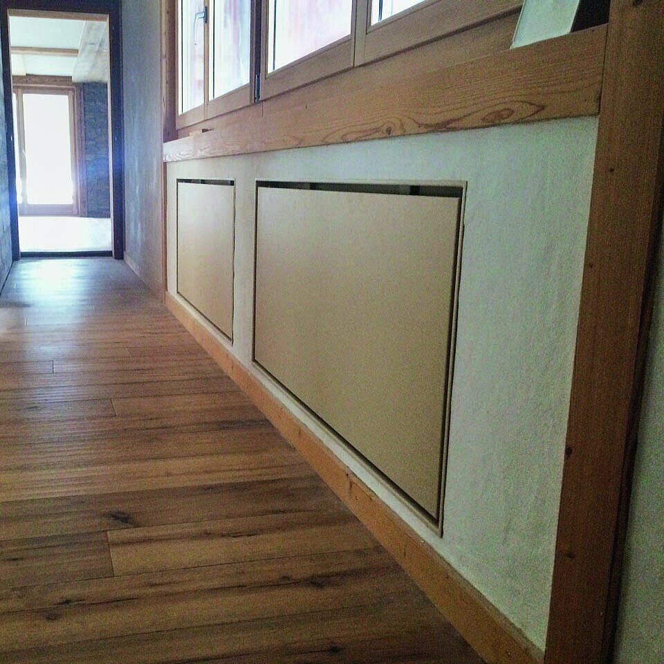 Nell'immobile di Maloja è stato installato un convettore con ventilatore a flusso trasversale per evitare che la superficie finestrata si appannasse. Inoltre, un convettore ad incasso sotto le superfici in vetro riscaldante a infrarossi impedisce l’ingresso di aria fredda davanti alle lastre di vetro.