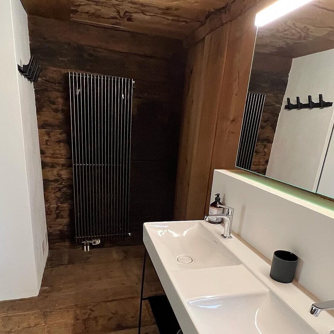 Siamo orgogliosi di far parte dell'imponente ristrutturazione della Bauernhaus (casa rurale) di Kirchbühl, dove sono stati installati i corpi riscaldanti Zehnder Charleston in colore antracite quali veri e propri richiami visivi. In questo progetto sono state utilizzate varie esecuzioni speciali dei nostri corpi riscaldanti, che hanno conferito a questa affascinante casa rurale quel certo non so che. I corpi riscaldanti Zehnder Charleston installati nel bagno fungono anche da eleganti corpi riscaldanti per il bagno grazie a una barra portasalviette aggiuntiva.