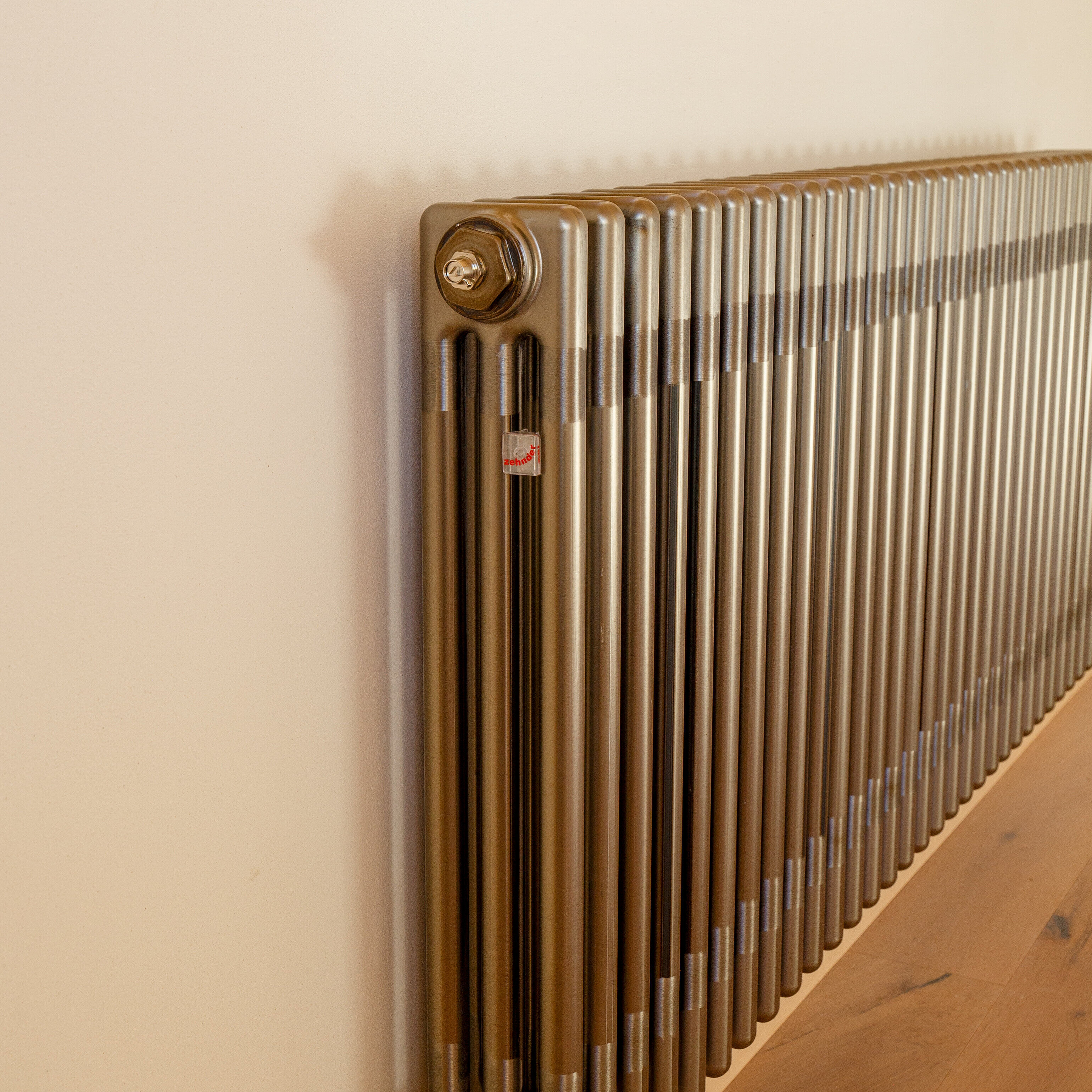 Un corpo riscaldante lungo 4 metri non passa nella tromba delle scale: per il soggiorno di una casa unifamiliare rustica ad Altendorf, è stato richiesto un Charleston Zehnder in un colore speciale e con una lunghezza importante, di ben 4 metri. Le caratteristiche sul posto, tuttavia, non consentivano di trasportare il magnifico esemplare di queste dimensioni. Il corpo riscaldante è stato quindi realizzato in due parti e assemblato in loco, nel soggiorno. Con il supporto di Zehnder, i due elementi hanno potuto essere collegati mediante nippli filettati e montati nella posizione desiderata. Ora il classico corpo riscaldante Charleston dallo stile intramontabile si fa notare non solo per il suo aspetto, ma anche per il calore gradevole che emana.