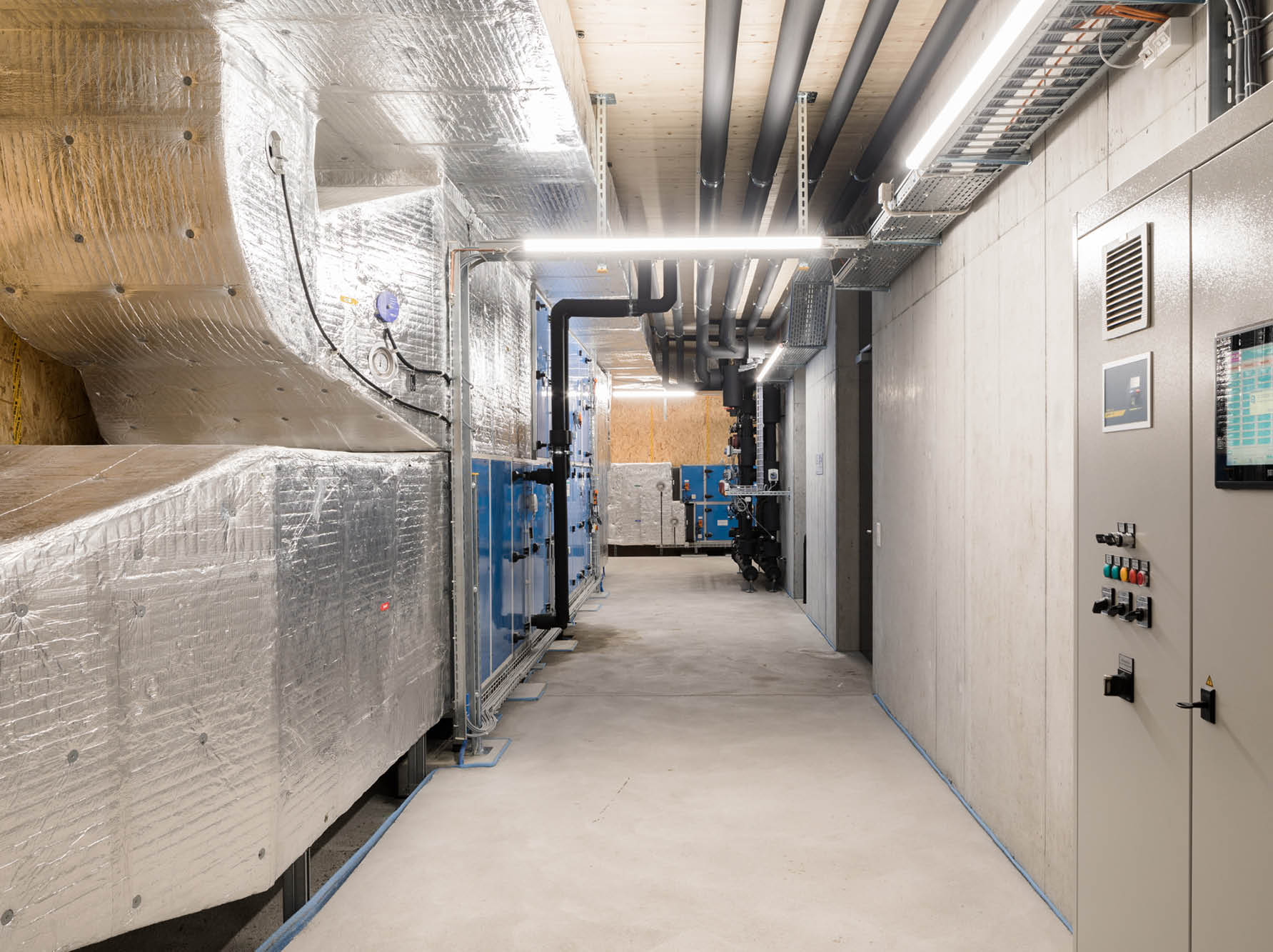 Per l’edificio AE15 è stata sviluppata una soluzione energetica avveniristica e particolarmente rispettosa dell’ambiente. Un sistema di riscaldamento e climatizzazione ben congegnato, dal generatore alla distribuzione, crea un clima ambientale gradevole per le 150 postazioni di lavoro.