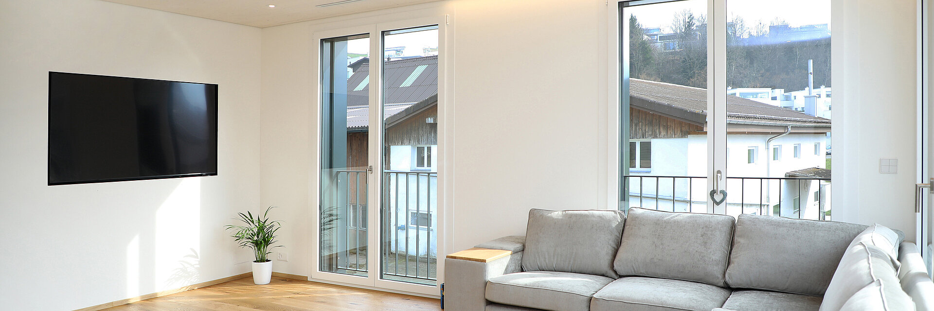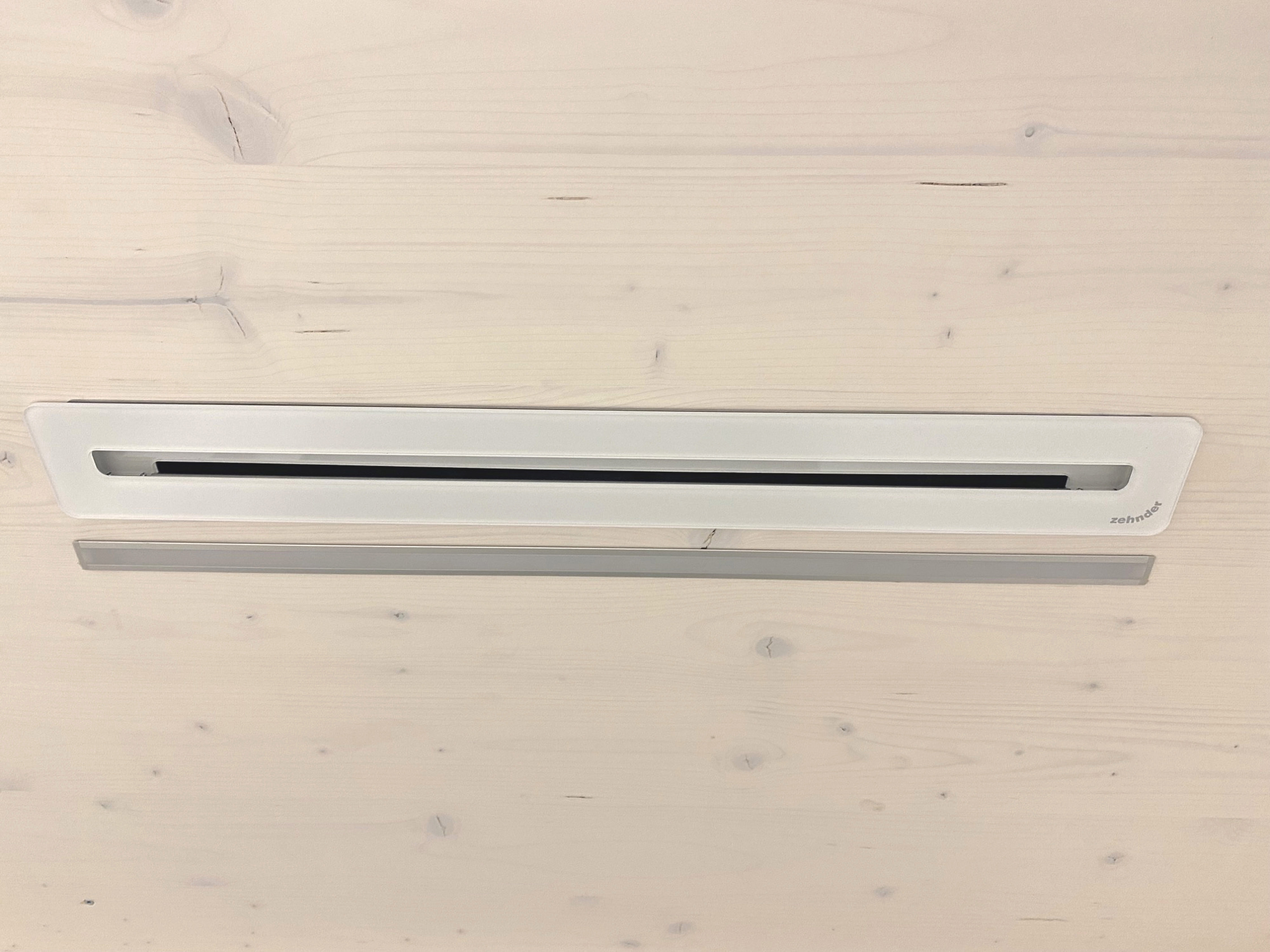 Il sistema di ventilazione comfort di Zehnder consente un apporto uniforme di aria fresca in tutto l'edificio. L'innovativa tecnologia del ventilatore garantisce un funzionamento silenzioso ed efficiente dal punto di vista energetico. L'aria fresca entra negli spazi abitativi e commerciali attraverso valvole discrete nel soffitto. «Poiché l'edificio viene utilizzato anche come showroom, l'effetto estetico era molto importante per me», spiega Heinz Bruhin. L'elegante effetto vetro bianco dei diffusori lineari ComfoGrid Linea si sposa perfettamente con il soffitto in legno chiaro. Per quanto riguarda il controllo della temperatura, gli apparecchi di ventilazione si regolano in base alla stagione. Con temperature esterne molto basse, una serpentina di preriscaldamento modulante provvede a pre-temperare l'aria esterna a monte dello scambiatore di calore a diamante, in modo da proteggere dal gelo. In estate, l'aria di mandata viene automaticamente preraffreddata e deumidificata con l'accessorio di raffreddamento ComfoCool Q. «Ci auguriamo che questa soluzione elimini la necessità di un costoso impianto di climatizzazione», afferma Heinz Bruhin, spiegando la sua decisione. La qualità dell'aria è costantemente monitorata grazie alla tecnologia dei sensori intelligenti. I sensori di CO2, VOC, umidità e temperatura sono posizionati in ogni stanza. Se, ad esempio, i livelli di CO2 e di umidità aumentano durante una riunione con i clienti, l'apparecchio di ventilazione passa automaticamente in modalità di ventilazione. I sensori sono controllati dal sistema iCASA smarthome. La tecnologia di riscaldamento e ventilazione di Zehnder ha potuto essere facilmente integrata e configurata nella domotica tramite un'interfaccia KNX.
