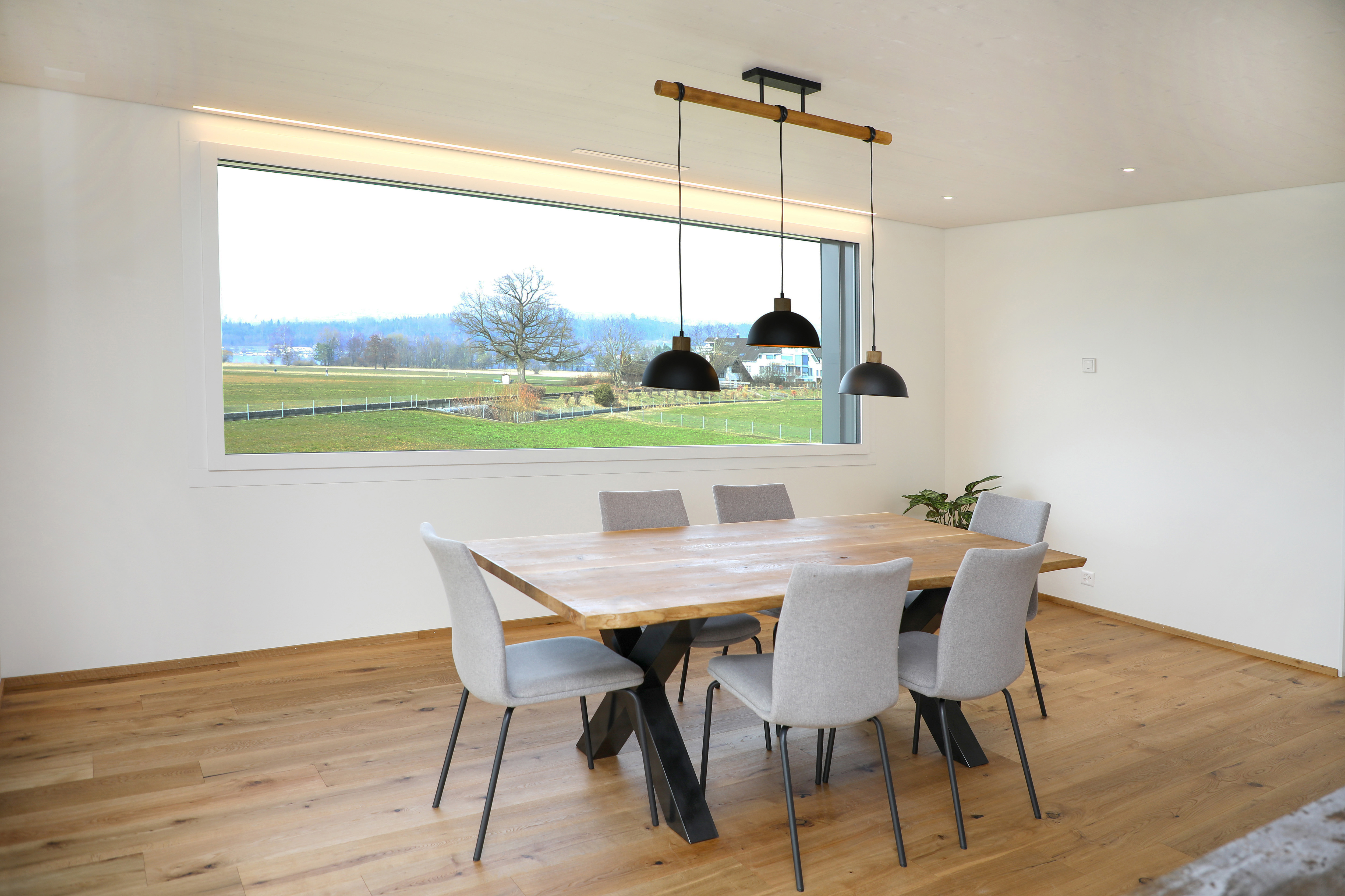 Il nuovo edificio di Nuolen combina spazi commerciali e residenziali: l'ufficio di progettazione Bruhin Engineering con showroom si trova al piano terra, su una superficie di 150 m2. Al piano superiore, Heinz Bruhin ha allestito per sé e la sua famiglia un appartamento di 5,5 stanze, per circa 170 m2. L'edificio è stato progettato come casa in legno ed è stato completato nel febbraio 2022. Naturalmente, l'edificio è dotato di tecnologia smart: illuminazione, ombreggiamento, climatizzazione e multimedia sono stati automatizzati con circa 150 punti dati. Anche la fatturazione dei costi di servizio per l'elettricità, l'acqua e il riscaldamento avviene automaticamente. Per Heinz Bruhin era molto importante garantire un clima ambientale sano all’interno dell'edificio: «Nelle case ben isolate di oggi, il ricambio d'aria naturale non è più garantito. Grazie alla nostra esperienza nella domotica, conosciamo il problema dei valori elevati di CO2. Con un sistema di ventilazione comfort, invece, il ricambio d'aria funziona automaticamente e il clima può essere regolato in modo ideale».