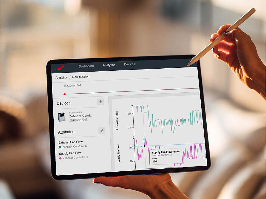 In tempi di digitalizzazione, i prodotti e i sistemi diventano sempre più intelligenti, anche in Zehnder. La combinazione di Zehnder Cloud e di prodotti per la ventilazione come Zehnder ComfoAir Q apre nuove possibilità. L'utente ha accesso alla dashboard Zehnder Cloud e può verificare e controllare il sistema in tempo reale.